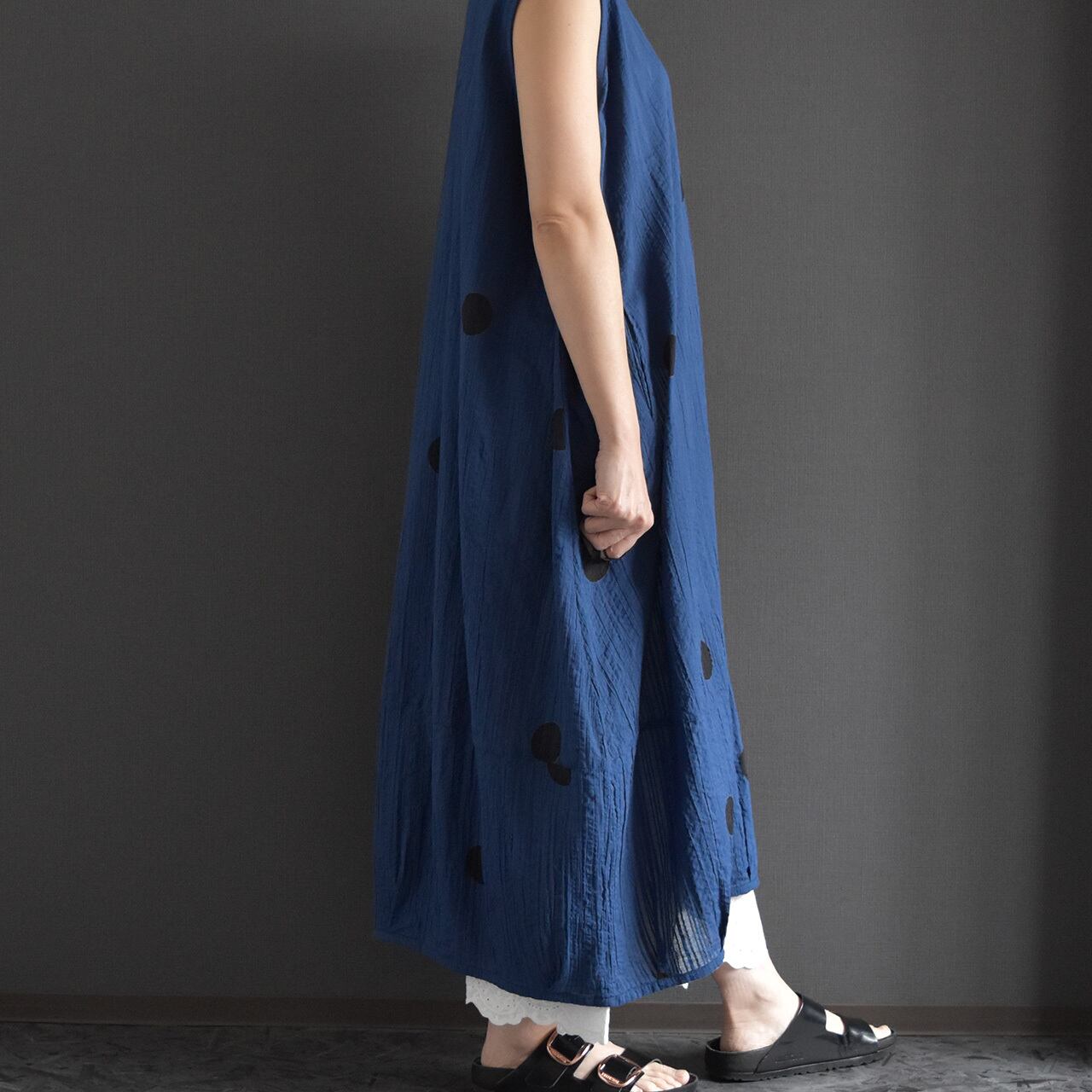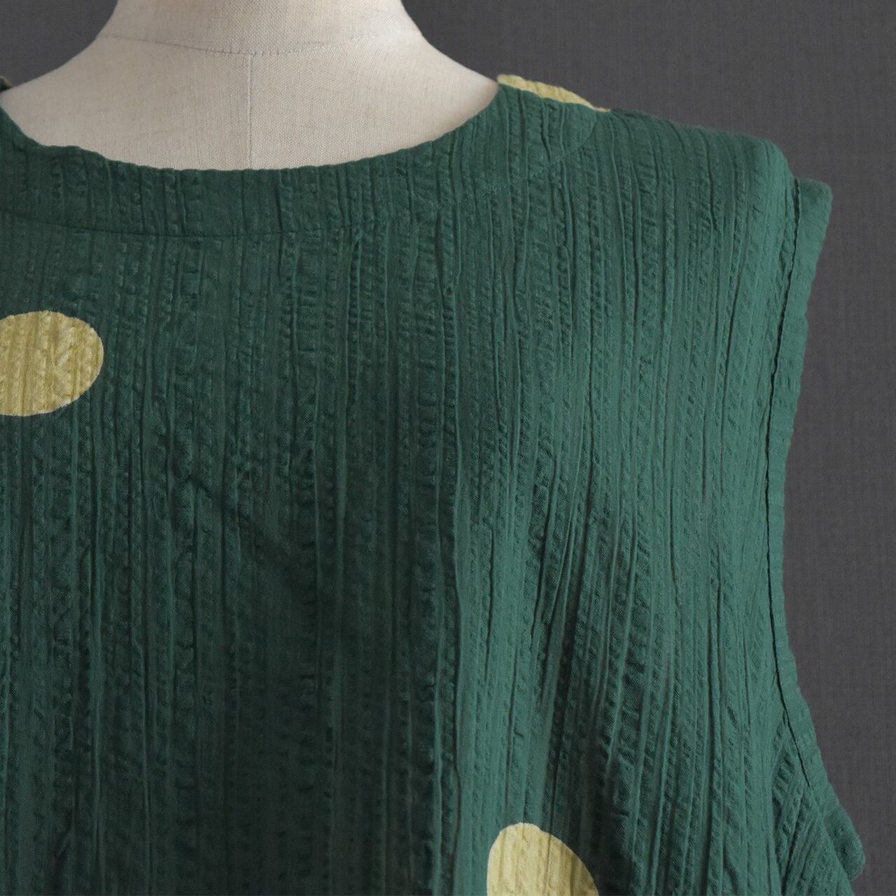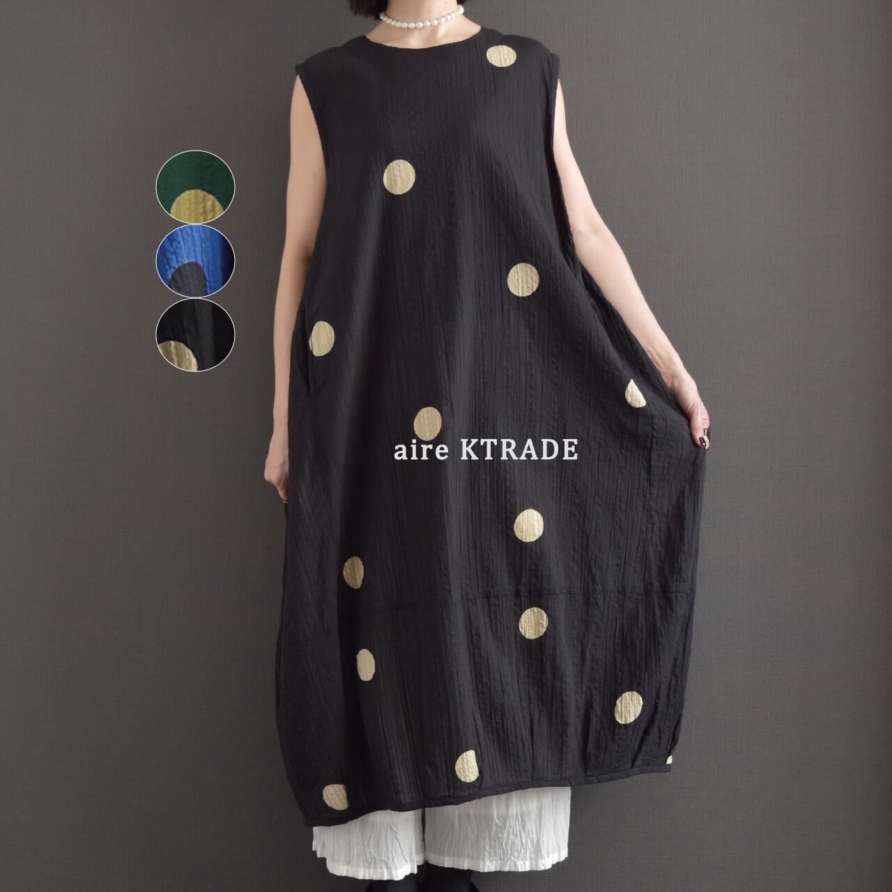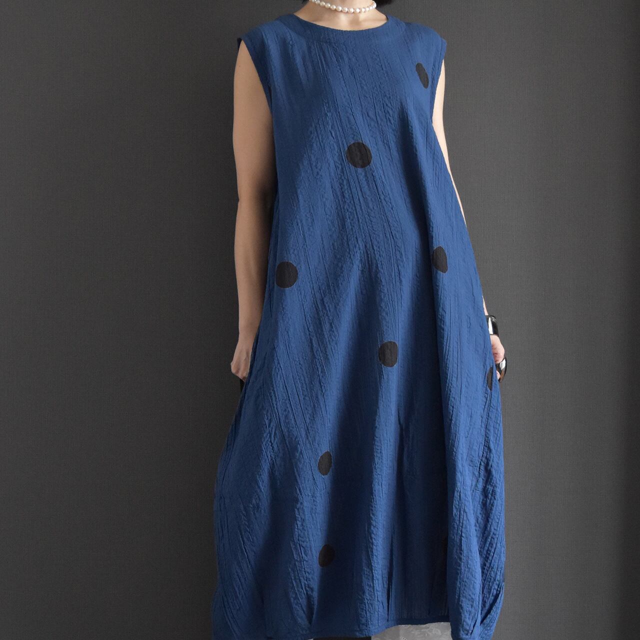 ゆったりとしたシルエットとドット柄が、シンプルながらも存在感のある一枚です。