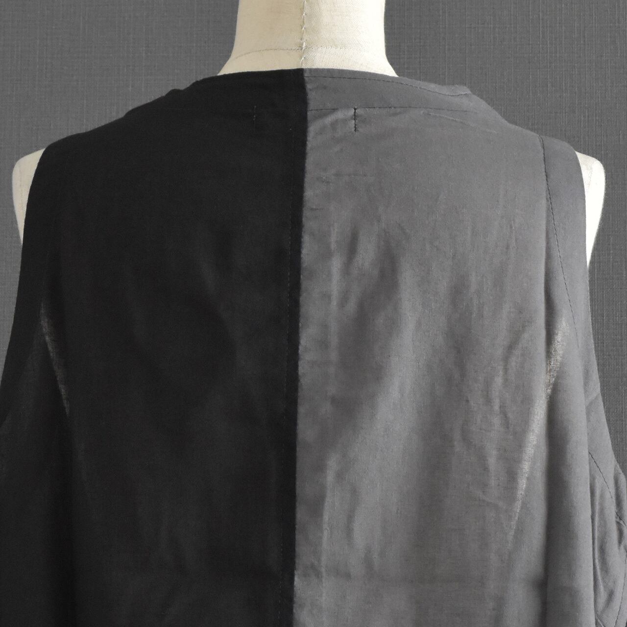 風通しの良い薄手綿を使用した前開きデザインの配色切替ベスト。