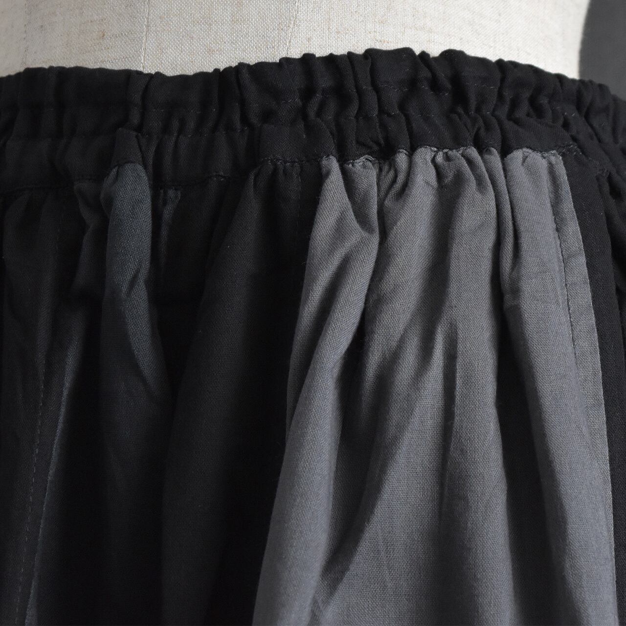 風通しの良い薄手綿を使用したスカート風の配色切替ワイドパンツ。