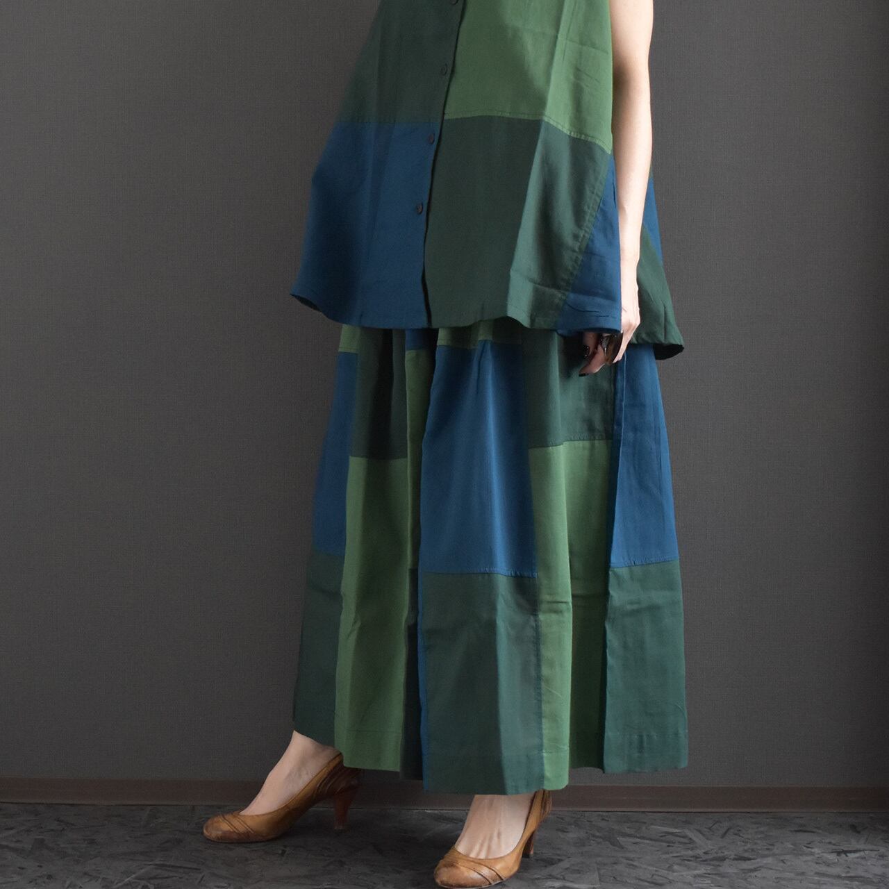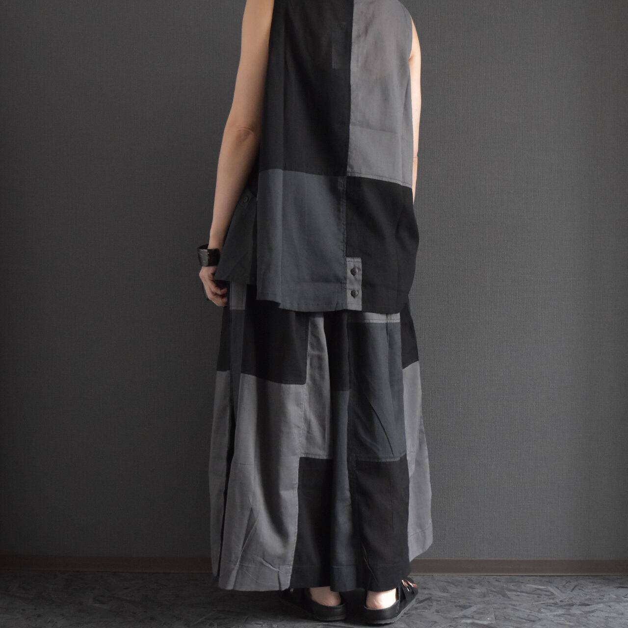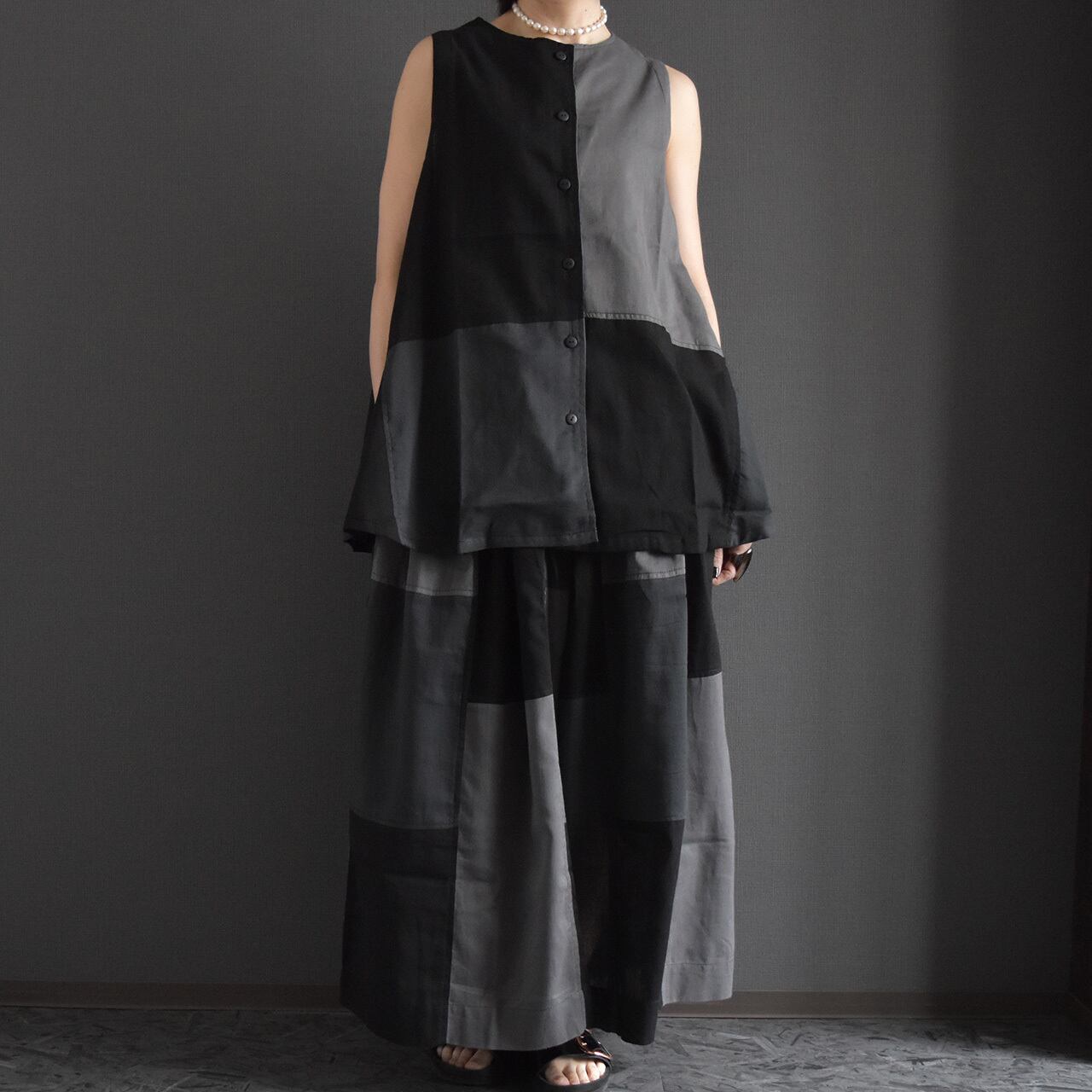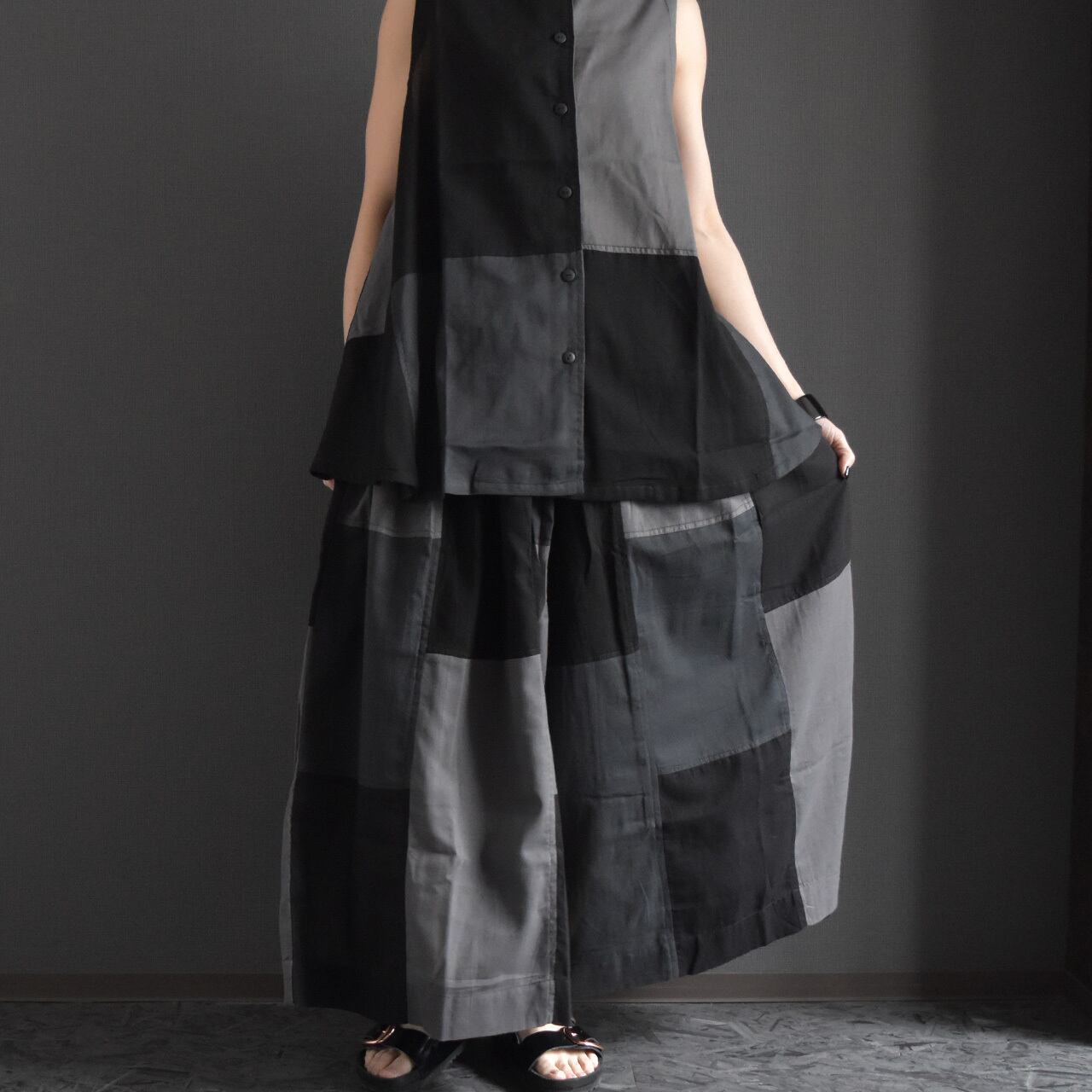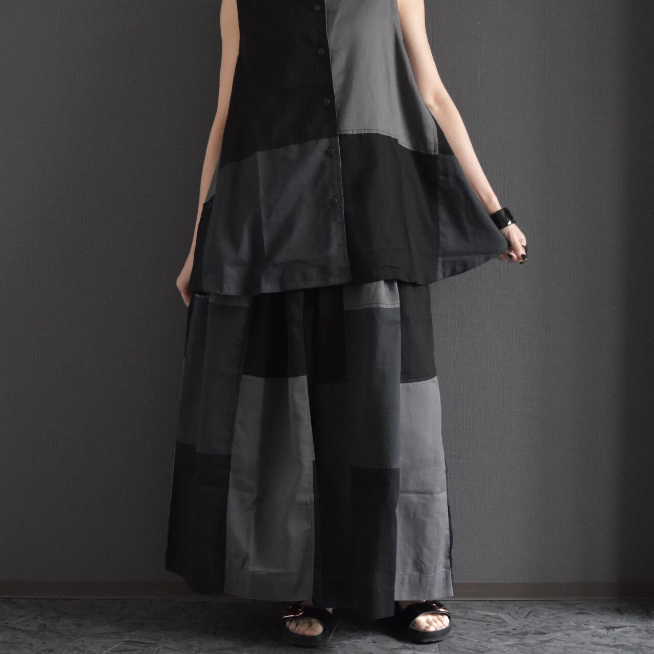 サールーパッチワークスカート風ワイドパンツ 2026夏 セットアップ可能