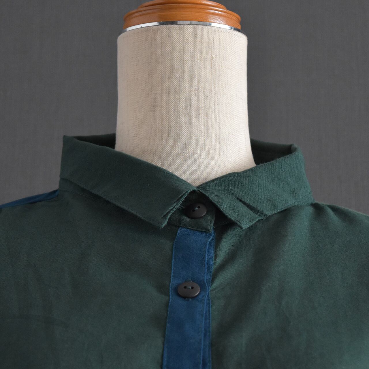 風通しの良い薄手綿を使用した配色切替がアクセントのシャツワンピース。