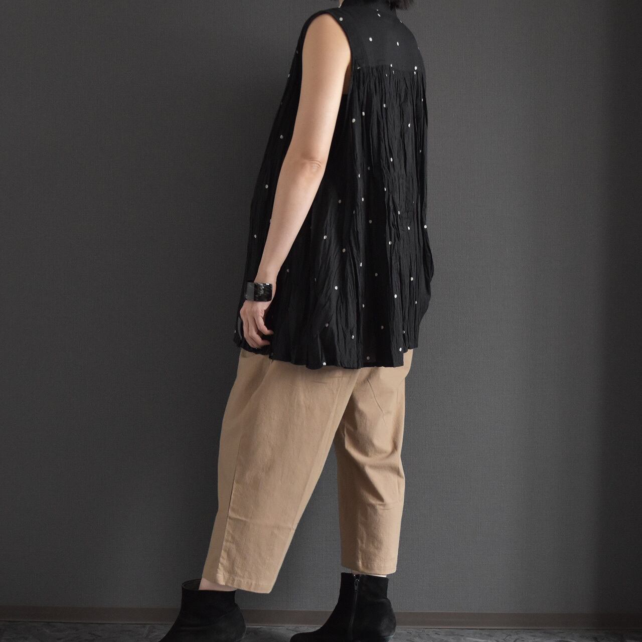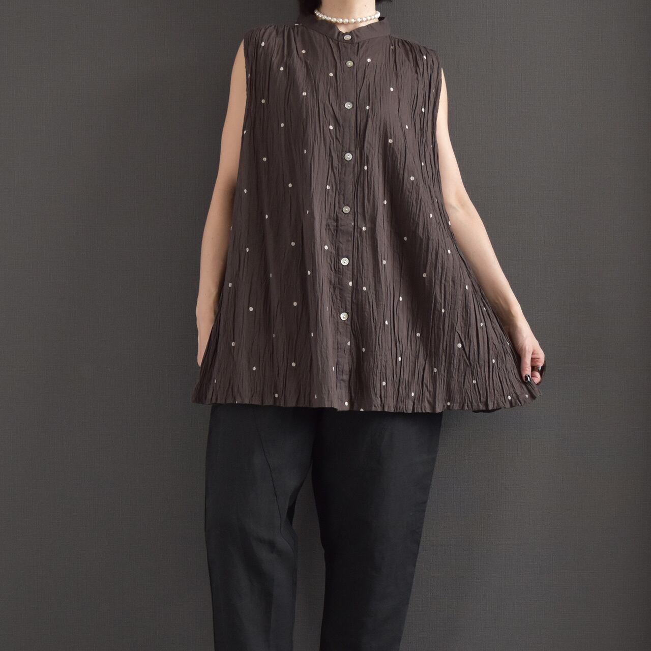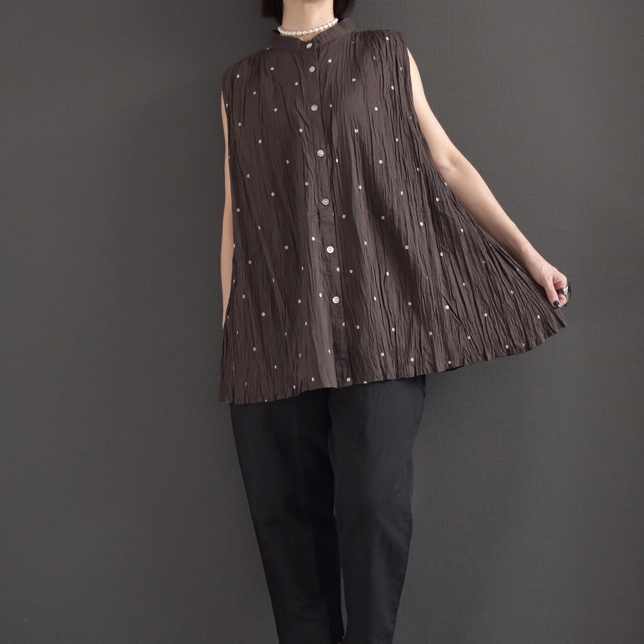 クリンクル加工のインド綿を使用した、軽やかで涼しげなノースリーブトップス。