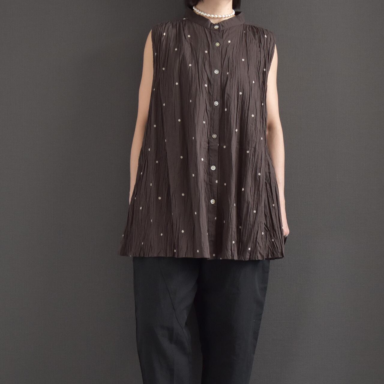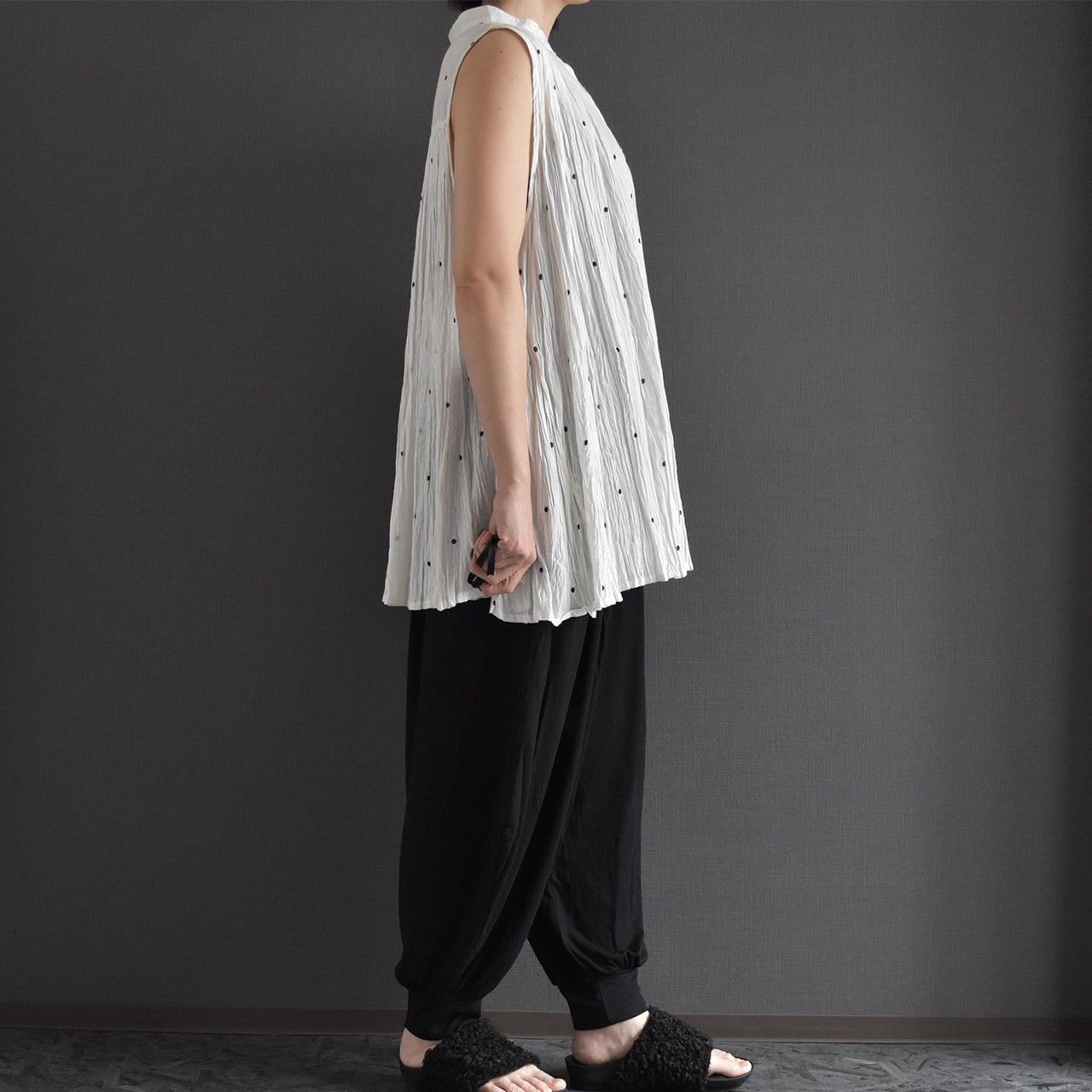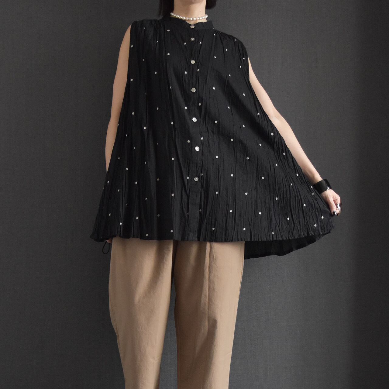 クリンクル加工のインド綿を使用した、軽やかで涼しげなノースリーブトップス。