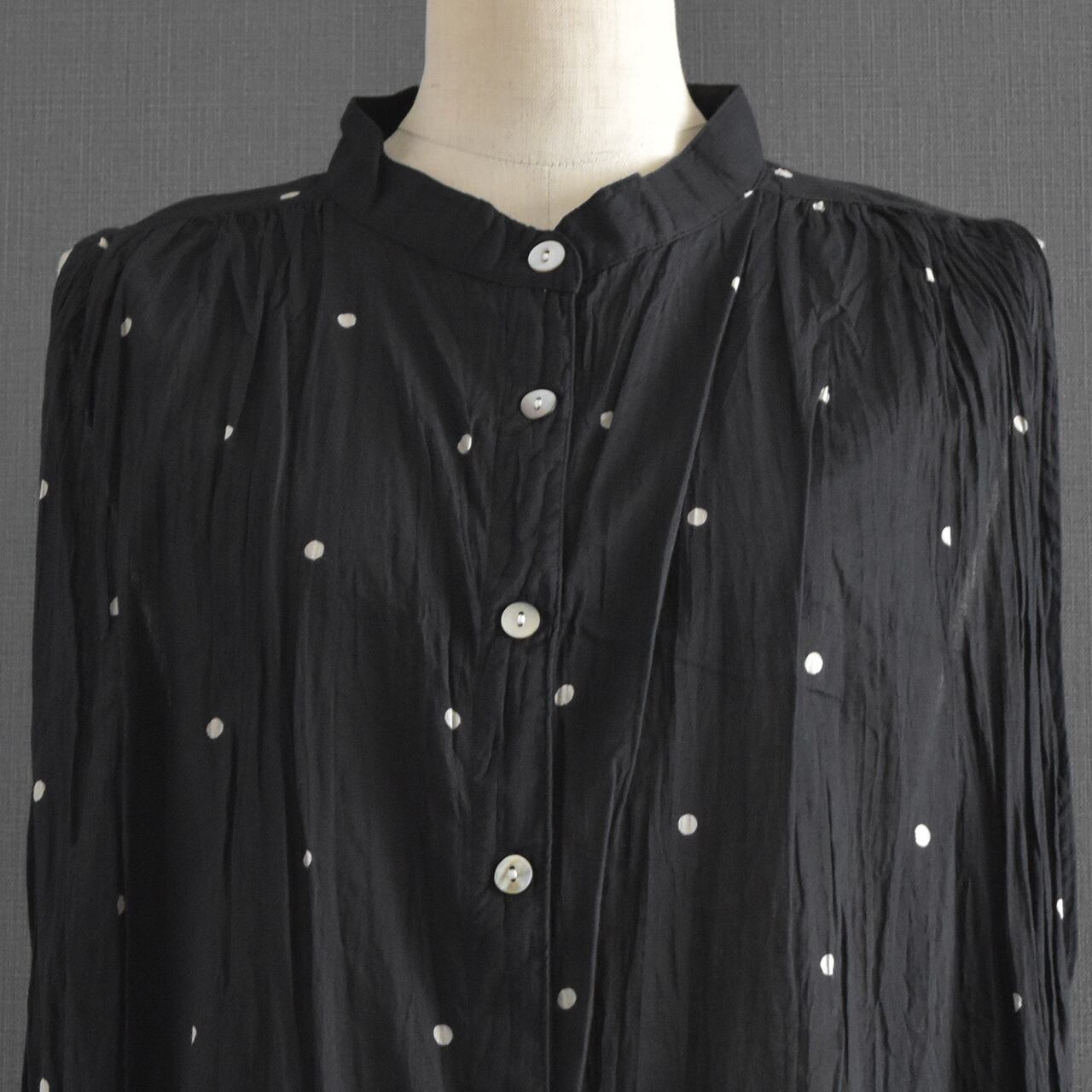 ナチュラルなシワ感とさりげないドット柄が、やわらかく上品な印象に。