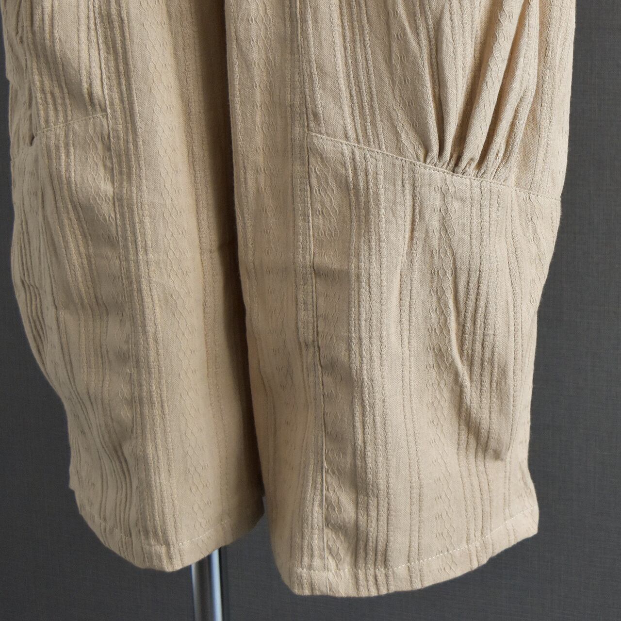 裏地:なし/ポケット:あり/生地の厚さ:中厚布帛/透け感:ほぼなし/伸縮性:なし